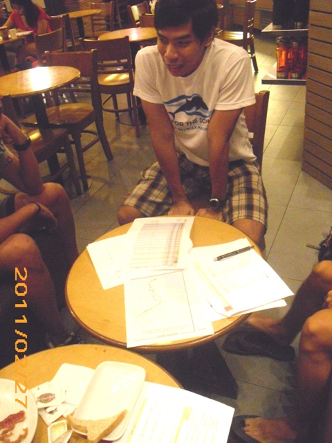 Two meet ups with my support crew were also scheduled to discuss the route, strategy, hydration, food, supplies, among others. It was a bonus that Dhenz a.k.a. Runningpinoy, 2010 BDM finisher, volunteered to offer his knowledge and experience in one of the meet ups.